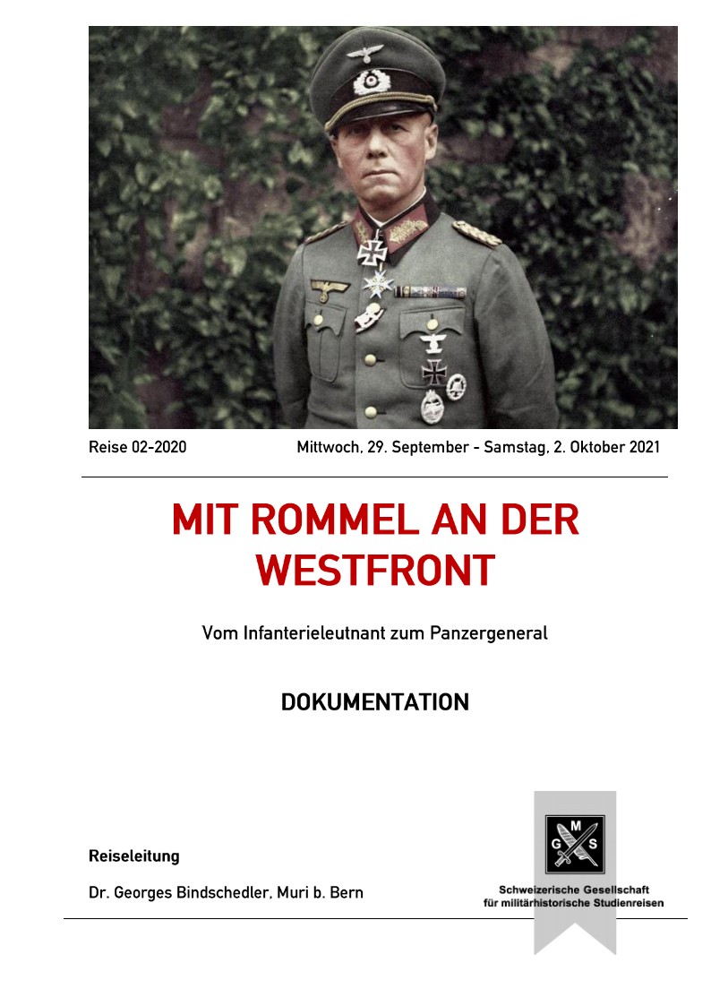 Erwin Rommel (1891 – 1944) war einer der bekanntesten Deutschen Heerführer im Zweiten Weltkrieg. Bekannt wurde er vor allem durch seinen Einsatz im Afrikafeldzug (1941 – 1943) in Libyen, Ägypten und Tunesien. Weniger bekannt ist seine erfolgreiche Führung der 7. Panzerdivision im Westfeldzug (Mai/Juni 1940) und sein Einsatz als junger Leutnant zu Beginn des Ersten Weltkrieges an der Westfront. Die Reise widmet sich den taktischen «Exploits» Rommels im Ersten Weltkrieg im Raum Argonnen/Verdun (1914/15) und im Zweiten Weltkrieg beim Übersetzen der 7. Panzerdivision am 14./15. Mai 1940 über die Maas.